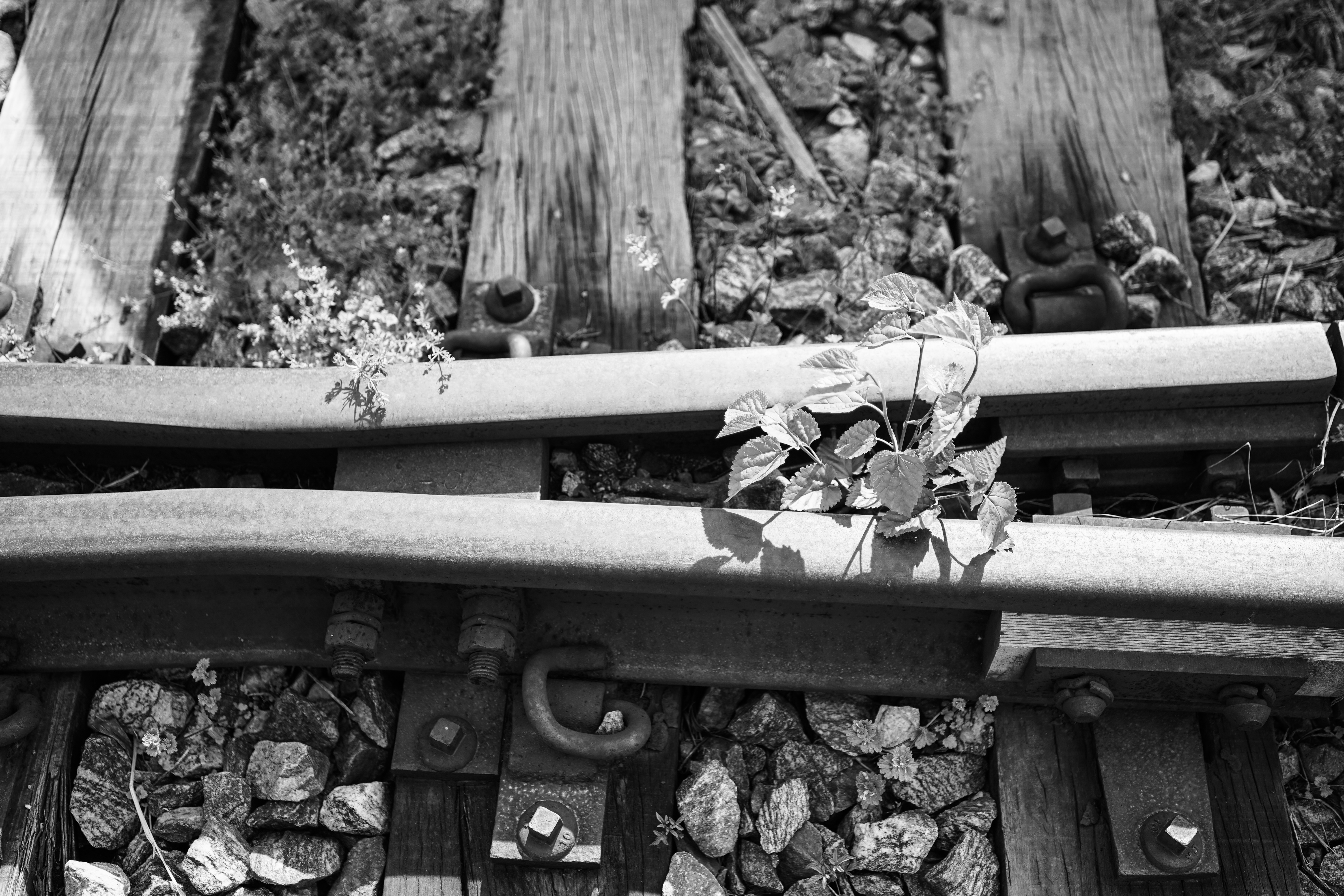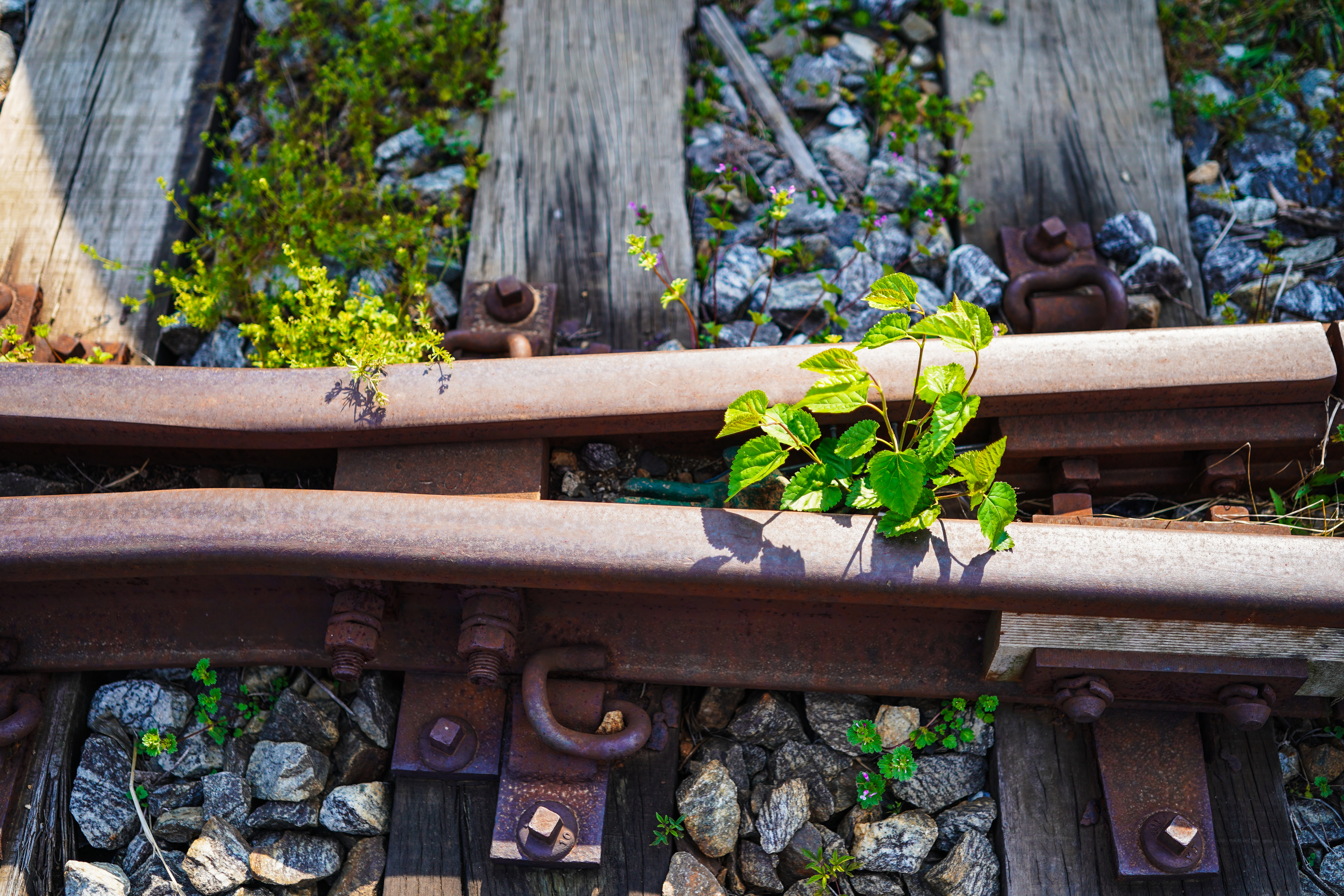 기차가 다니지 않으니 잡초들아 자라난다.