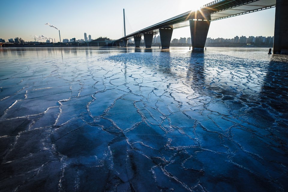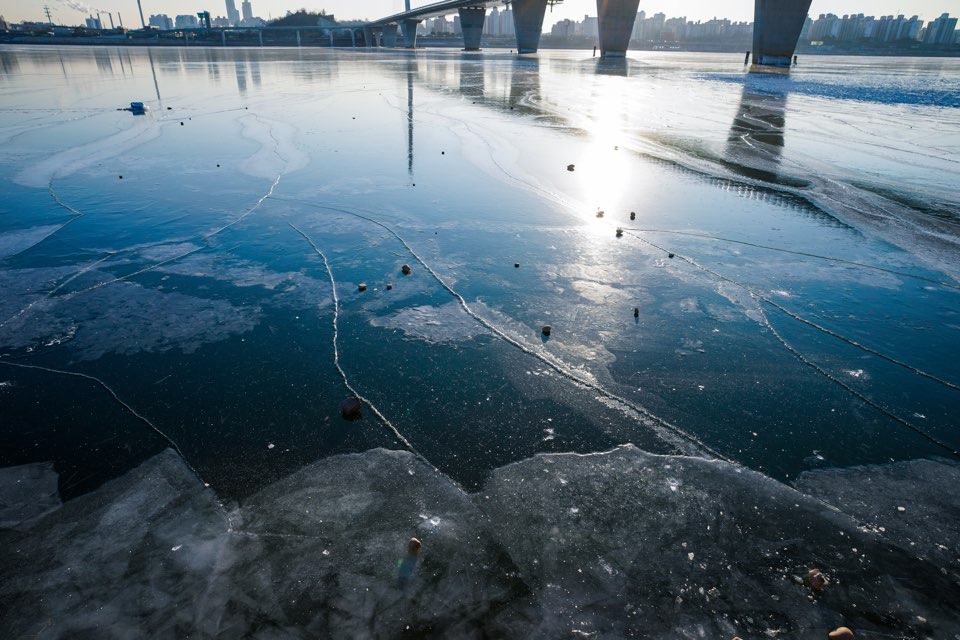 한참 추울 때 만났던 한강의 얼음.