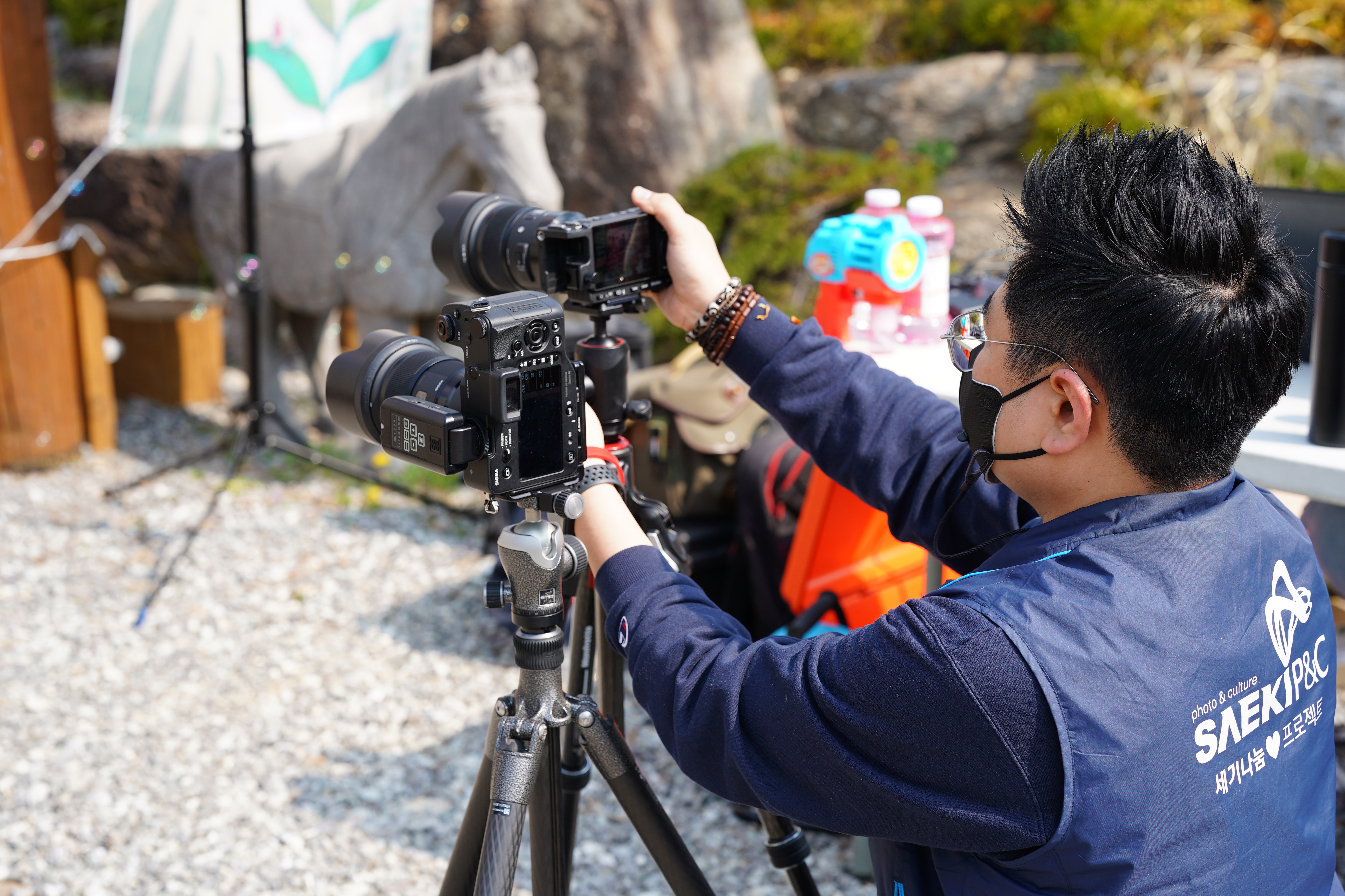 장애인 가족 찍고 있는
