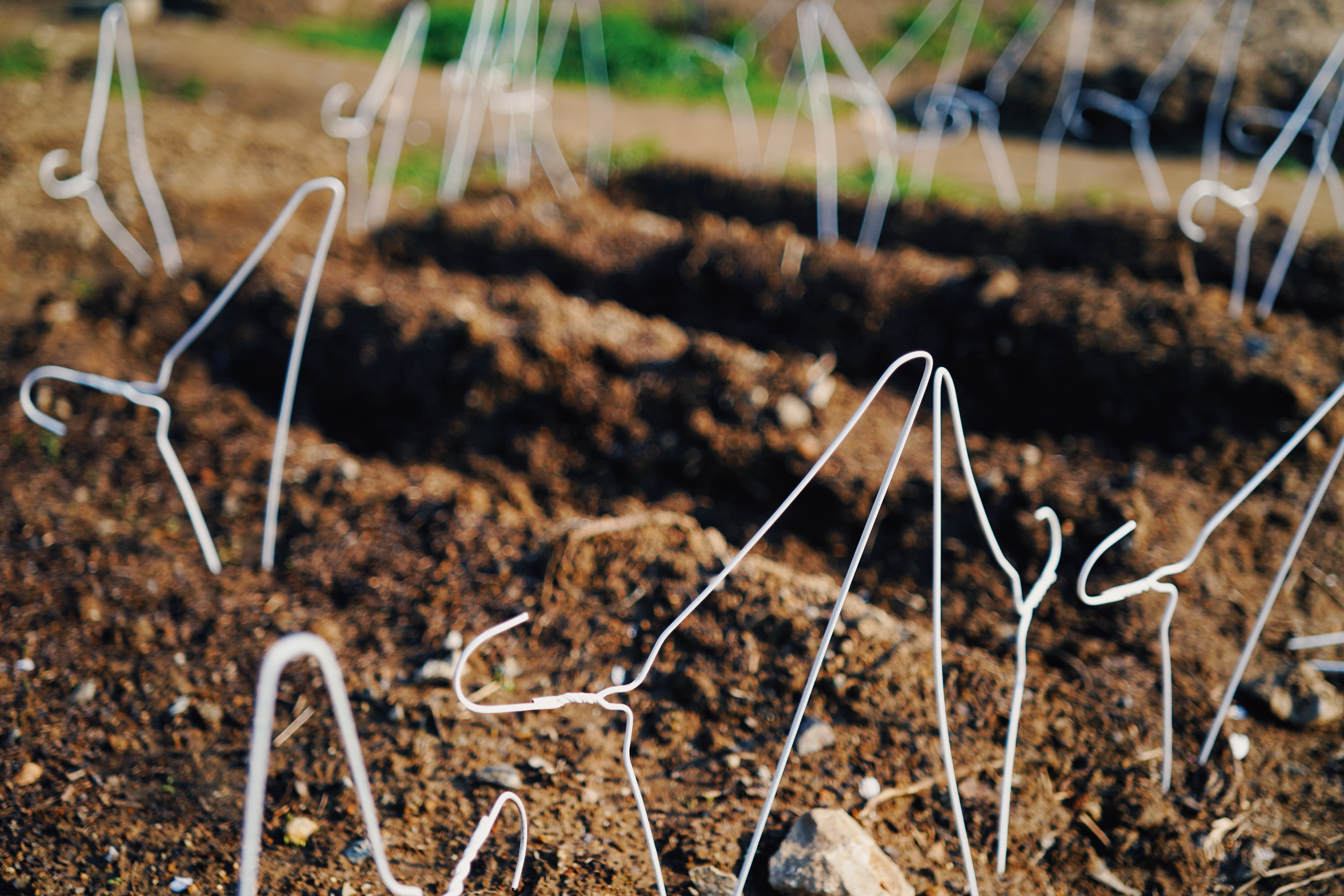 봄이다. 뭘 심었기에 사람들이 밟을까봐 옷걸이를 박았을까. 저 모습도 예쁘다. Zeiss Batis 2/40 + SONY a9