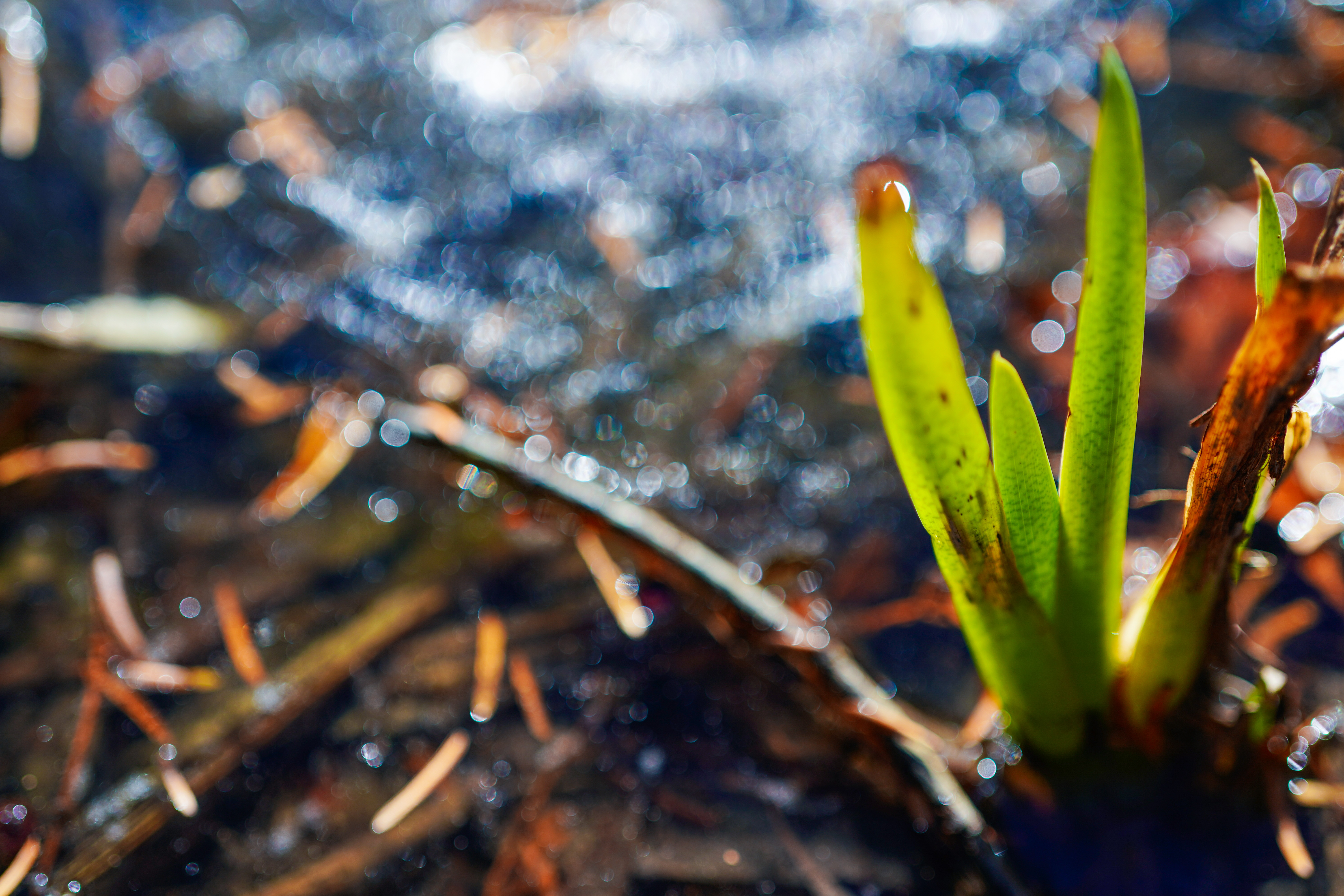 얼음 위. 너의 뿌리는 엄음 속에 있지만 너의 잎들은 녹색으로 싱싱하게 살아 있구나. 봄이 되거든 꼭 아름다운 꽃을 보여주렴. Zeiss Batis 2/40 + SONY a9