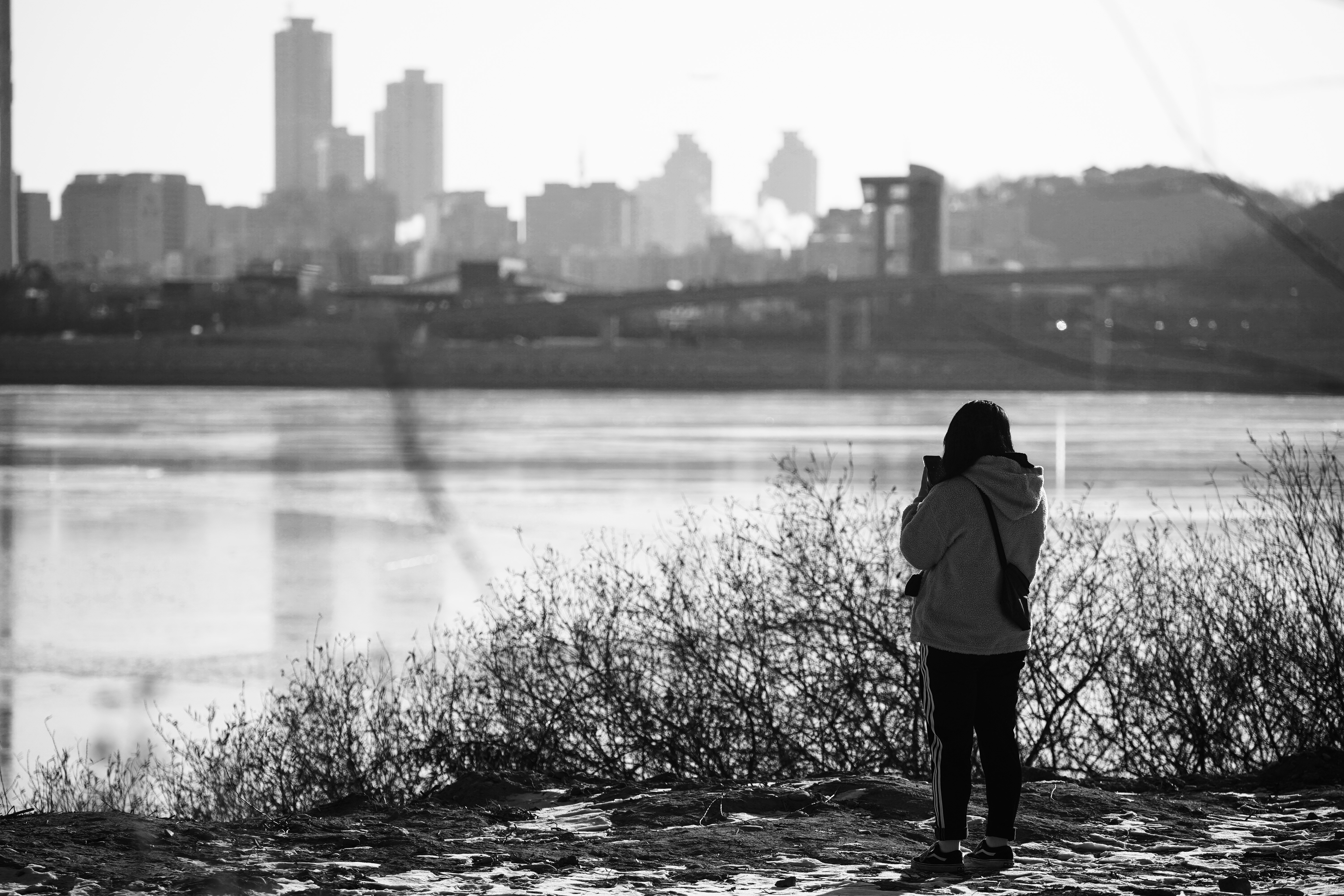 한강, 얼음. 그는 무슨 생각을 하고 있었을까. Zeiss Batis 2.8/135 + SONY a9
